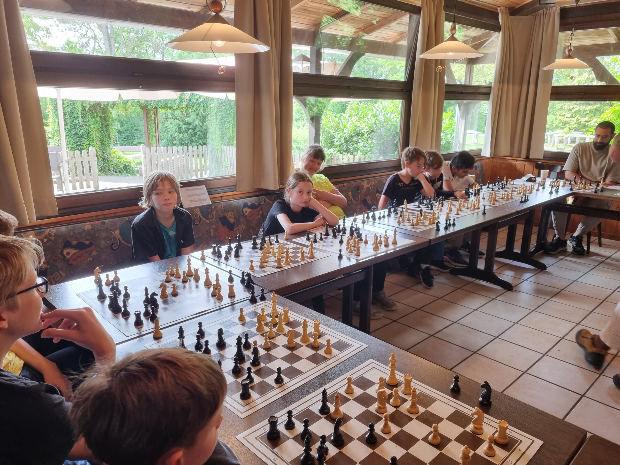 Die Haller Remise bot mal wieder hervorragende Spielbedingungen. Viel Platz, kostenfreie Getränke und unsere digitalen Bretter haben sich aufgrund einer Förderung des Landessportbunds auch vermehrt. Vier Partien pro Runde wurden live ins Internet übertragen und sind hier zu finden. Die erste Runde fehlt leider. Ich übe noch das Handling, von Turnier zu Turnier wird es aber besser :-).